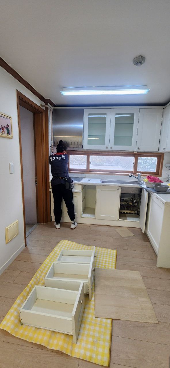 안녕하세요, 기대했던 것 이상으로 깨끗하게 이사 청소 진행해주셔서 감사드리는 마음에해드릴 건 없고 후기로 보답합니다.이사 청소 업체가 너무 많아서 여기저기 찾아보다가 추가요금 없이 최초 견적대로 해준다는 영구크린으로 진행하게 되었습니다. 이사도 영구이사로 진행하던 터에 많은 할인을 해 주셔서 오히려 브랜드 임에도 타 업체보다 비싸지 않았습니다.약속 시각보다 딱 10분전에 미리 오셔서 프로답게 준비 하시고, 특히 지금껏 봤던 어떤 업체보다도 많은 인원이 오셔서 일단 인원에서 깜짝 놀랐습니다.이 인원이 오시면 일당도 안되실거 같은데 걱정도 되면서 깨끗하게 될까 걱정도 동시에...하지만, 제가 신경 쓰였던 부분을 포함해서 그 이상의 디테일까지 챙기시며 청소 해주시는 모습을 보고 여기서 하기 잘했다는 생각을 했습니다.깨끗하게 사용하던 집이 아니라서 묵은때가 많고, 살림에 손 뗀 집 처럼 부엌이 더러웠는데, 말끔히 정리 해주셨어요. 창틀도 25년 된 연식이라 어쩔수 없다고 포기했는데, 꼼꼼하게 설명해 주시고 더이상 어떻게 할 수 없을만큼 깨끗하게 해 주셨네요. 사실 욕실에 대해서는 워낙 욕실 조금 디자인 자체가 옛스럽고 집기들도 많이 노후화가 되서큰 기대를 안 했는데 새거울 처럼, 그리고 키가 닿지 않는 거울장 상단까지 깔끔하게 진행해주셔서 좋았습니다. 그냥 지나칠 수도 있는 보일러 상단까지 다 청소해주시고, 뽁뽁이 같은거 제거 하실때에도 혹시 쓰실건지 물어봐 주시고 세심한 부분이 좋았습니다. 주말에 이른 시간부터 오셔서 너무 고생 많으셨고, 추후에도 청소를 의뢰할 일이 있으면영구크린의 김성용 마스터님 팀에 의뢰하고 싶습니다. 강추합니다 :)