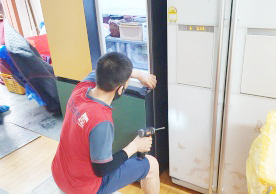 영구크린 전용차량, 유니폼 및 전용자재 사용, 바닥보강재 설치 완료, 아이스박스 청결 양호, 이중비닐 포장 및 에어캡 포장, 가전, 가구 커버포장 진행 등