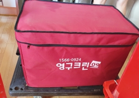 영구크린 전용차량, 유니폼 및 전용자재 사용, 바닥보강재 설치 완료, 아이스박스 청결 양호, 이중비닐 포장 및 에어캡 포장, 가전, 가구 커버포장 진행 등