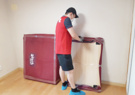 영구크린 전용차량, 유니폼 및 전용자재 사용, 바닥보강재 설치 완료, 아이스박스 청결 양호, 이중비닐 포장 및 에어캡 포장, 가전, 가구 커버포장 진행 등