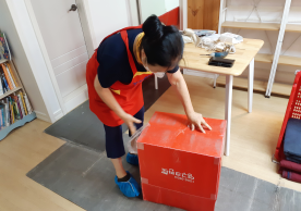 영구크린 전용차량, 유니폼 및 전용자재 사용, 바닥보강재 설치 완료, 아이스박스 청결 양호, 이중비닐 포장 및 에어캡 포장, 가전, 가구 커버포장 진행 등