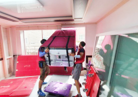 영구크린 전용차량, 유니폼 및 전용자재 사용, 바닥보강재 설치 완료, 아이스박스 청결 양호, 이중비닐 포장 및 에어캡 포장, 가전, 가구 커버포장 진행 등