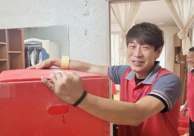 영구크린 전용차량, 유니폼 및 전용자재 사용, 바닥보강재 설치 완료, 아이스박스 청결 양호, 이중비닐 포장 및 에어캡 포장, 가전, 가구 커버포장 진행 등