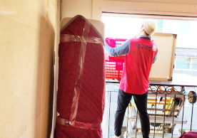영구크린 전용차량, 유니폼 및 전용자재 사용, 바닥보강재 설치 완료, 아이스박스 청결 양호, 이중비닐 포장 및 에어캡 포장, 가전, 가구 커버포장 진행 등