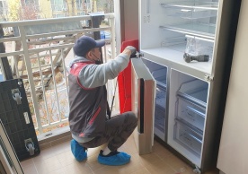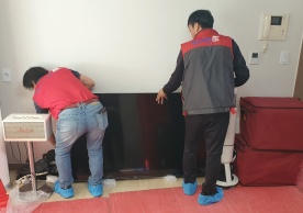 영구크린 전용차량, 유니폼 및 전용자재 사용, 바닥보강재 설치 완료, 아이스박스 청결 양호, 이중비닐 포장 및 에어캡 포장, 가전, 가구 커버포장 진행 등