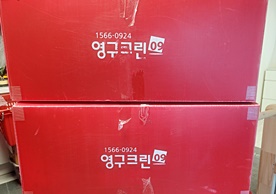 영구크린 전용차량, 유니폼 및 전용자재 사용, 바닥보강재 설치 완료, 아이스박스 청결 양호, 이중비닐 포장 및 에어캡 포장, 가전, 가구 커버포장 진행 등