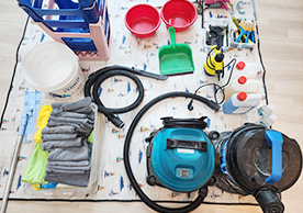 일반청소기, 스팀청소기, 체크리스트, 유니폼 착용 등의 기본적인 준비사항이 잘 준비되어 있었습니다.