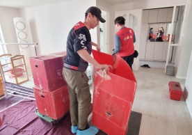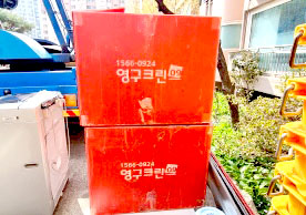 영구크린 전용차량, 유니폼 및 전용자재 사용, 바닥보강재 설치 완료, 아이스박스 청결 양호, 이중비닐 포장 및 에어캡 포장, 가전, 가구 커버포장 진행 등