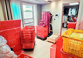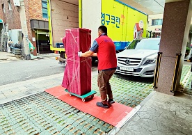 영구크린 전용차량, 유니폼 및 전용자재 사용, 바닥보강재 설치 완료, 아이스박스 청결 양호, 이중비닐 포장 및 에어캡 포장, 가전, 가구 커버포장 진행 등
