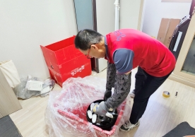 영구크린 전용차량, 유니폼 및 전용자재 사용, 바닥보강재 설치 완료, 아이스박스 청결 양호, 이중비닐 포장 및 에어캡 포장, 가전, 가구 커버포장 진행 등
