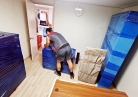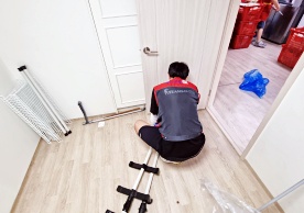 영구크린 전용차량, 유니폼 및 전용자재 사용, 바닥보강재 설치 완료, 아이스박스 청결 양호, 이중비닐 포장 및 에어캡 포장, 가전, 가구 커버포장 진행 등