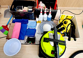 일반청소기, 스팀청소기, 체크리스트, 유니폼 착용 등의 기본적인 준비사항이 잘 준비되어 있었습니다.