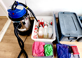 깨끗한 청소장비와 소모품들을 잘 정리정돈하여 깔끔하게 세팅된 모습으로 청소 서비스를 진행하는 모습이 보기 좋았습니다.