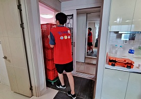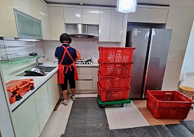 영구크린 전용차량, 유니폼 및 전용자재 사용, 바닥보강재 설치 완료, 아이스박스 청결 양호, 이중비닐 포장 및 에어캡 포장, 가전, 가구 커버포장 진행 등