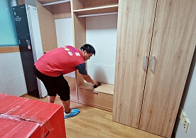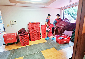 영구크린 전용차량, 유니폼 및 전용자재 사용, 바닥보강재 설치 완료, 아이스박스 청결 양호, 이중비닐 포장 및 에어캡 포장, 가전, 가구 커버포장 진행 등