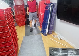 영구크린 전용차량, 유니폼 및 전용자재 사용, 바닥보강재 설치 완료, 아이스박스 청결 양호, 이중비닐 포장 및 에어캡 포장, 가전, 가구 커버포장 진행 등