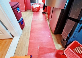 영구크린 전용차량, 유니폼 및 전용자재 사용, 바닥보강재 설치 완료, 아이스박스 청결 양호, 이중비닐 포장 및 에어캡 포장, 가전, 가구 커버포장 진행 등