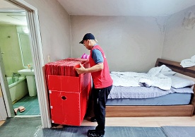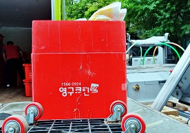 영구크린 전용차량, 유니폼 및 전용자재 사용, 바닥보강재 설치 완료, 아이스박스 청결 양호, 이중비닐 포장 및 에어캡 포장, 가전, 가구 커버포장 진행 등
