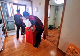 영구크린 전용차량, 전용자재 사용, 바닥보강재 설치 완료, 아이스박스 청결 양호, 이중비닐 포장 및 에어캡 포장, 가전, 가구 커버포장 진행 등