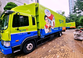 영구크린 전용차량, 유니폼 및 전용자재 사용, 바닥보강재 설치 완료, 아이스박스 청결 양호, 이중비닐 포장 및 에어캡 포장, 가전, 가구 커버포장 진행 등