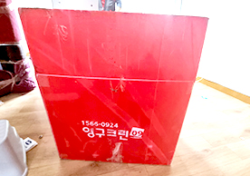 영구크린 전용차량, 유니폼 및 전용자재 사용, 아이스박스 청결 양호, 이중비닐 포장 및 에어캡 포장, 가전, 가구 커버포장 진행 등
