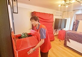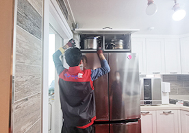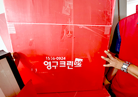 영구크린 전용차량, 유니폼 및 전용자재 사용, 바닥보강재 설치 완료, 아이스박스 청결 양호, 이중비닐 포장 및 에어캡 포장, 가전, 가구 커버포장 진행 등