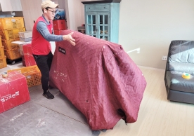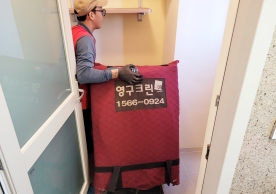 영구크린 전용차량, 유니폼 및 전용자재 사용, 바닥보강재 설치 완료, 아이스박스 청결 양호, 이중비닐 포장 및 에어캡 포장, 가전, 가구 커버포장 진행 등
