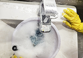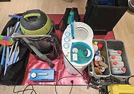 장비와 소모품들을 잘 정리정돈해서 깔끔하게 청소를 진행하는 모습이 보기 좋았습니다.