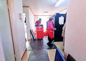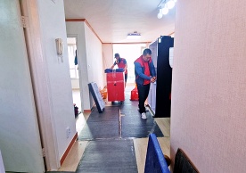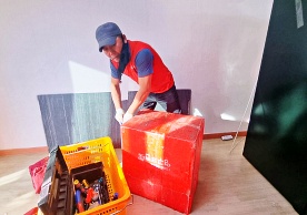 영구크린 전용차량, 유니폼 및 전용자재 사용, 바닥보강재 설치 완료, 아이스박스 청결 양호, 이중비닐 포장 및 에어캡 포장, 가전, 가구 커버포장 진행 등
