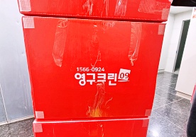 영구크린 전용차량, 유니폼 및 전용자재 사용, 바닥보강재 설치 완료, 아이스박스 청결 양호, 이중비닐 포장 및 에어캡 포장, 가전, 가구 커버포장 진행 등