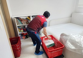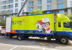 영구크린 전용차량, 유니폼 및 전용자재 사용, 바닥보강재 설치 완료, 아이스박스 청결 양호, 이중비닐 포장 및 에어캡 포장, 가전, 가구 커버포장 진행 등