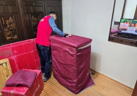 영구크린 전용차량, 유니폼 및 전용자재 사용, 바닥보강재 설치 완료, 아이스박스 청결 양호, 이중비닐 포장 및 에어캡 포장, 가전, 가구 커버포장 진행 등