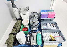 마루세정기, 스팀해빙기 등 전문적인 청소장비를 모두 갖추고 있었으며, 200장 이상의 타올을 잘 정리해가며 청소를 진행하고 있었습니다.