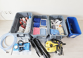 청소장비와 소모품들을 잘 정리정돈해서 깔끔하게 청소를 진행하는 모습이 보기 좋았습니다.