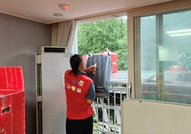 영구크린 전용차량, 유니폼 및 전용자재 사용, 바닥보강재 설치 완료, 아이스박스 청결 양호, 이중비닐 포장 및 에어캡 포장, 가전, 가구 커버포장 진행 등