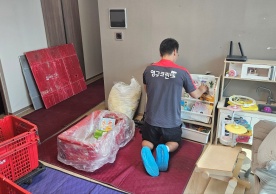 영구크린 전용차량, 유니폼 및 전용자재 사용, 바닥보강재 설치 완료, 아이스박스 청결 양호, 이중비닐 포장 및 에어캡 포장, 가전, 가구 커버포장 진행 등