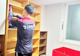 영구크린 전용차량, 유니폼 및 전용자재 사용, 바닥보강재 설치 완료, 아이스박스 청결 양호, 이중비닐 포장 및 에어캡 포장, 가전, 가구 커버포장 진행 등