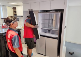 영구크린 전용차량, 유니폼 및 전용자재 사용, 바닥보강재 설치 완료, 아이스박스 청결 양호, 이중비닐 포장 및 에어캡 포장, 가전, 가구 커버포장 진행 등