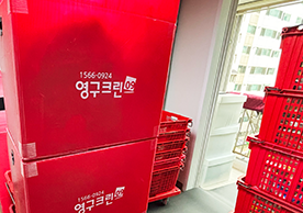 영구크린 전용차량, 유니폼 및 전용자재 사용, 바닥보강재 설치 완료, 아이스박스 청결 양호, 이중비닐 포장 및 에어캡 포장, 가전, 가구 커버포장 진행 등