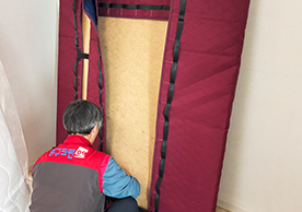영구크린 전용차량, 유니폼 및 전용자재 사용, 바닥보강재 설치 완료, 아이스박스 청결 양호, 이중비닐 포장 및 에어캡 포장, 가전, 가구 커버포장 진행 등