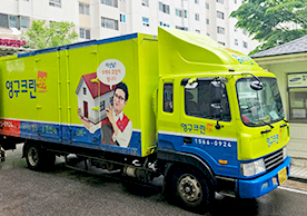 영구크린 전용차량, 유니폼 및 전용자재 사용, 바닥보강재 설치 완료, 아이스박스 청결 양호, 이중비닐 포장 및 에어캡 포장, 가전, 가구 커버포장 진행 등