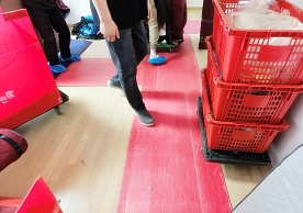 다만, 기존 바닥보강재를 사용하여 테이프로 고정한 모습이 적발되었습니다. 테이프 없는 이사서비스 현장이 될 수 있도록 철저한 점검 및 개선바랍니다.