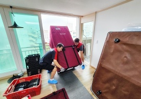 영구크린 전용차량, 유니폼 및 전용자재 사용, 바닥보강재 설치 완료, 아이스박스 청결 양호, 이중비닐 포장 및 에어캡 포장, 가전, 가구 커버포장 진행 등