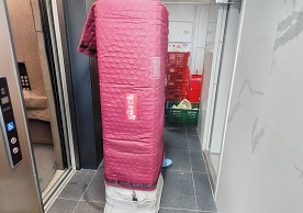 영구크린 전용차량, 유니폼 및 전용자재 사용, 바닥보강재 설치 완료, 아이스박스 청결 양호, 이중비닐 포장 및 에어캡 포장, 가전, 가구 커버포장 진행 등