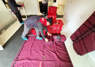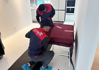영구이사 전용차량 및 전용자재 사용 이중 비닐포장 및 바닥보강, 덧신 착용 양호 ▶ 개선 필요 사항 - 커버 포장 N자 완성도 미흡 |