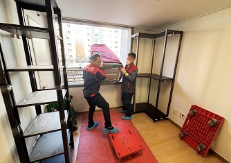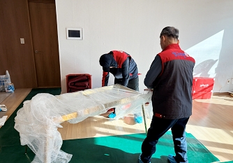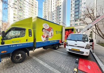 영구이사 전용차량 및 전용자재 사용 이중 비닐포장 및 바닥보강, 덧신 착용 양호