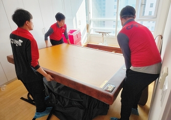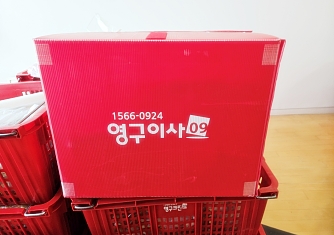 영구이사 전용차량 및 전용자재 사용 이중 비닐포장 및 바닥보강, 덧신 착용 양호