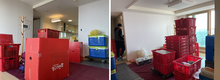 사다리차에서 나온 짐들은 빠르게 거실로 나온다.