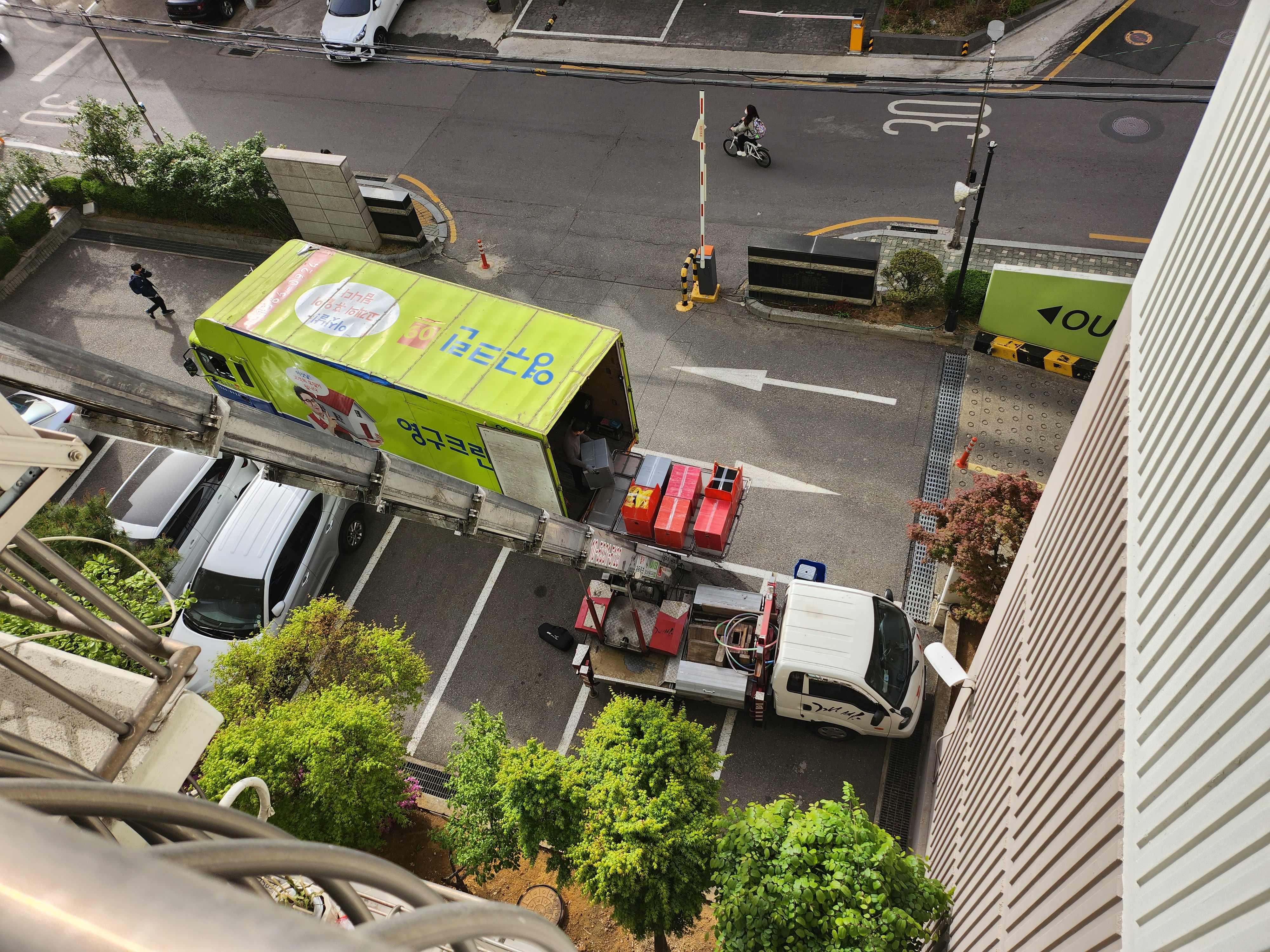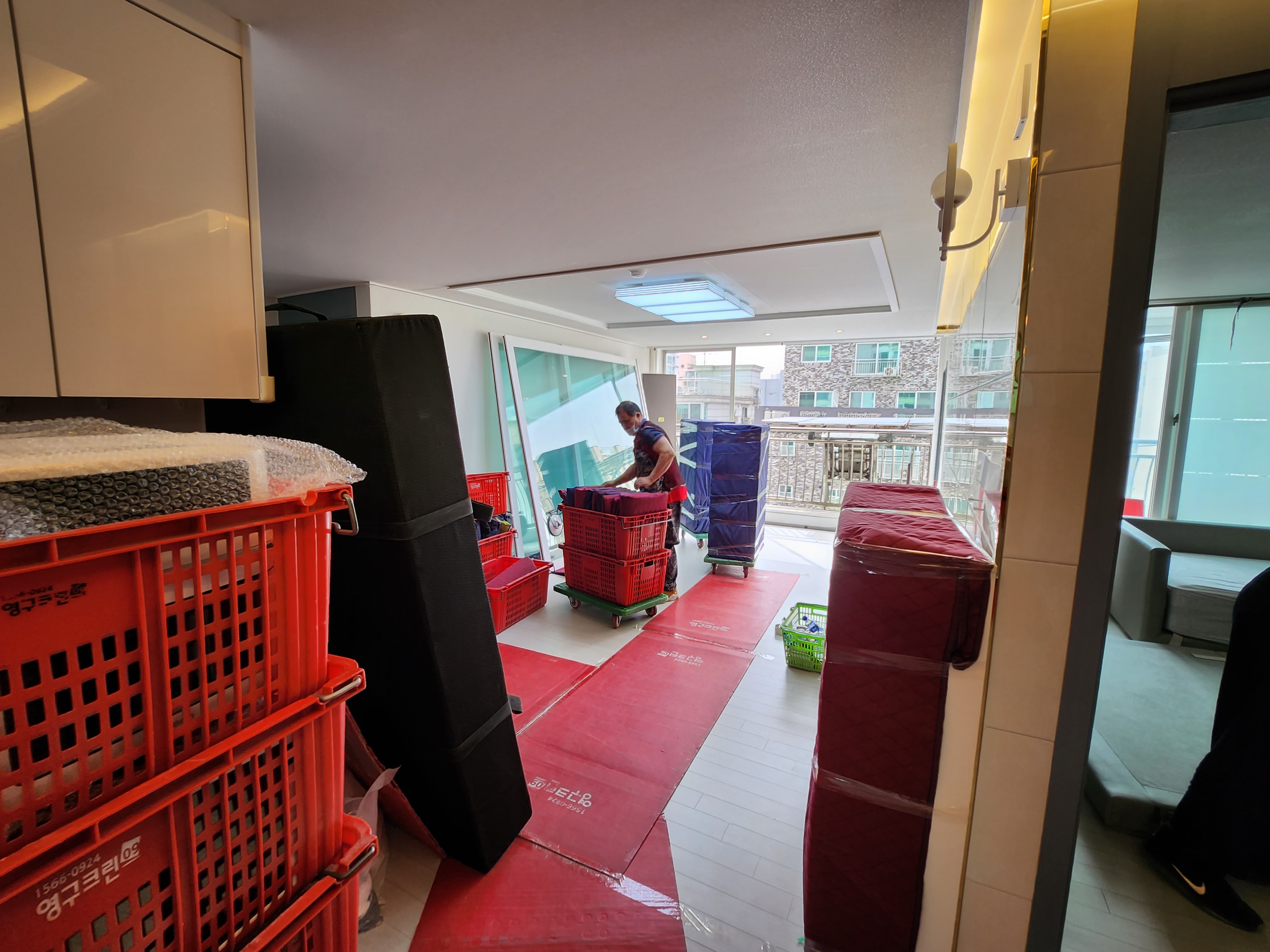 사다리차 도착하고 나서부터는 거실 쪽 창문을 떼어내고