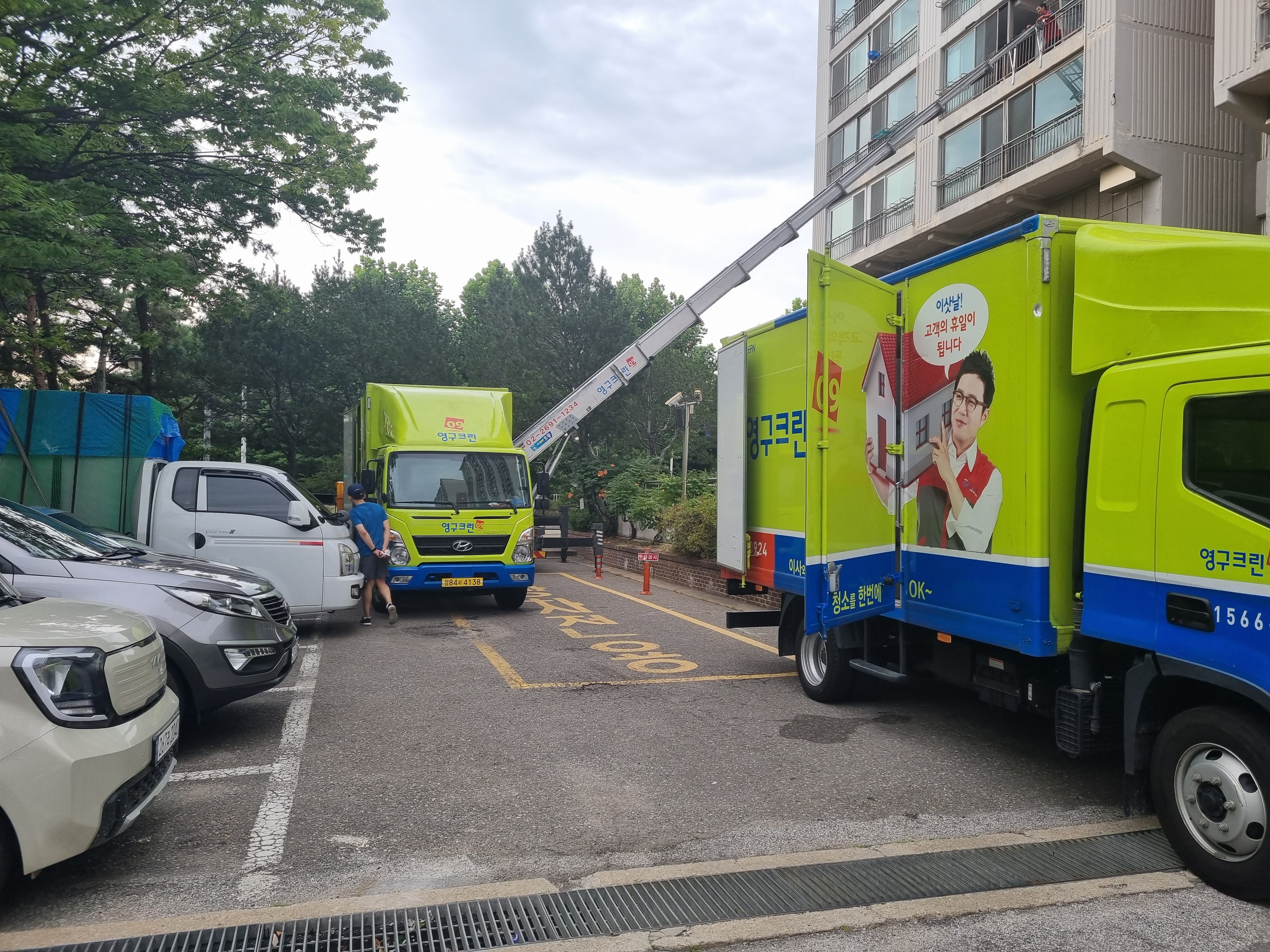그 바람에 이틀간 작업을 해주셔야했고, 당일엔 차량 두대와 사다리차가 와서 두시간 반만에 끝난 것 같아요.